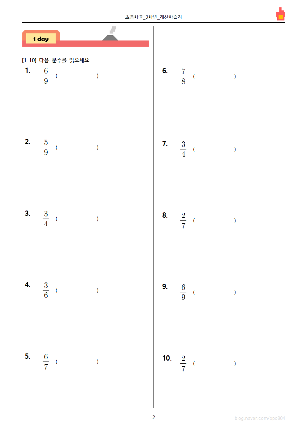 #태그 : 분수와 소수, 분수 읽기, 분수 읽기 학습지, 분수와 소수 문제, 초3, 초등학교 3학년, 분수 읽는 법, 분수 읽는 방법