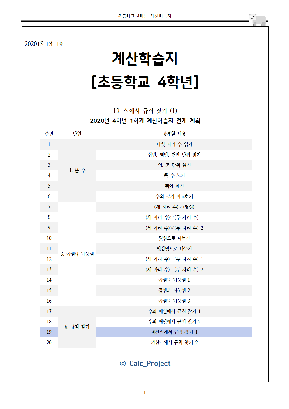 | 곱셈과 나눗셈 초등학교 4학년 1학기 3단원 종합문제 (어려운 연산) (0) | 2020.05.05 |