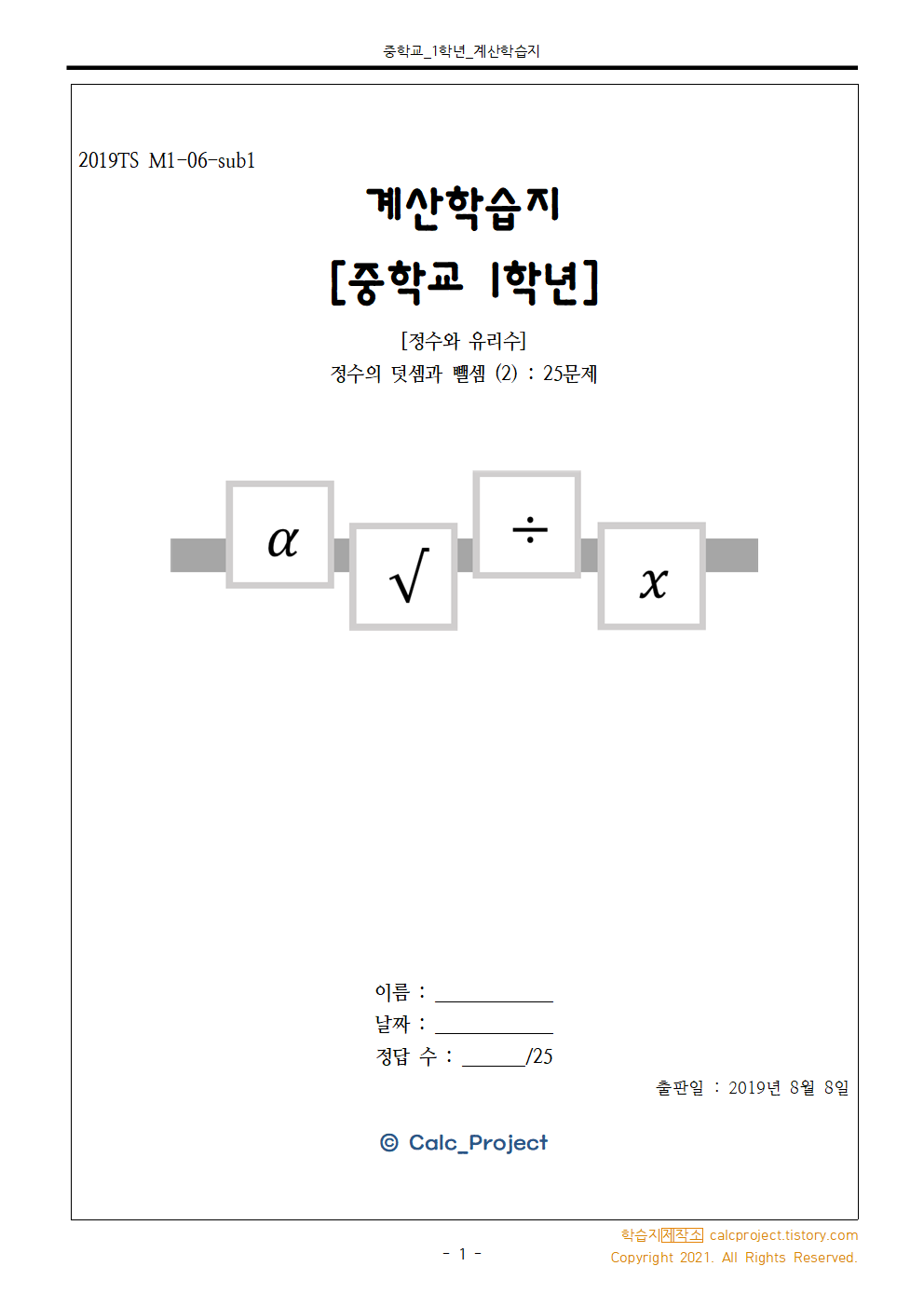 '수학 학습지 > 중학교 1학년 1학기' 카테고리의 다른 글