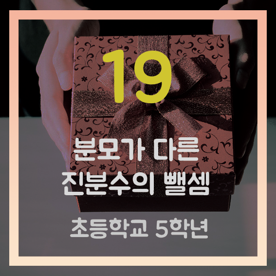 5단원 '분수의 덧셈과 뺄셈'은 분수 자체가 자연수의 연산과 다르고, 분모조차 다르기 때문에 많은 아이들이 낮설어하는 연산입니다. 하지만 분수의 연산은 실생활에서 자주 볼 수 있고, 중고등학교 수학에서 중요한 연산이므로 충분히 공부해놓는다면, 앞으로 수학을 배울 때 자신감을 가질 수 있을 것입니다.