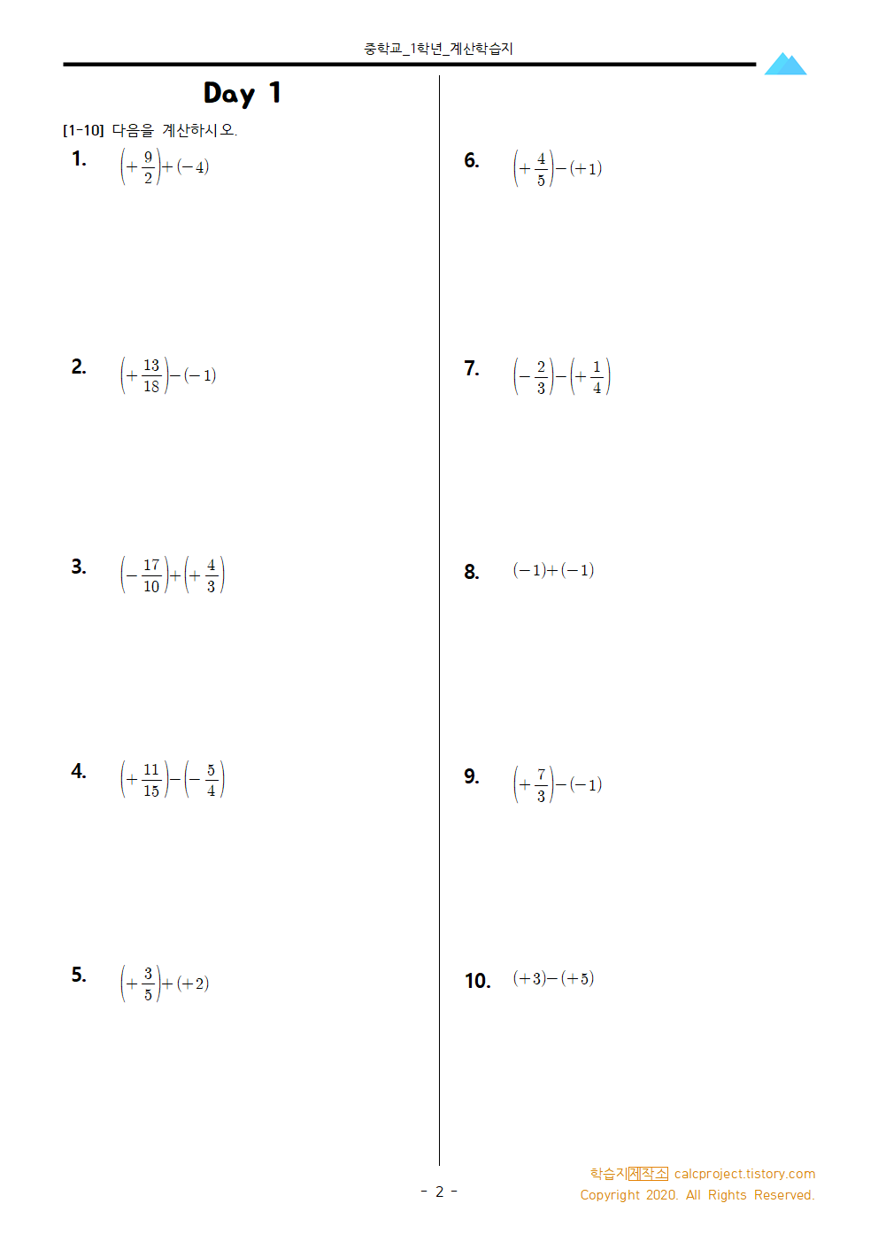 #태그 : 중1, 정수와 유리수, 유리수의 덧셈과 뺄셈, 연습문제, 연산문제, 중1 연산 학습지, 중1 유리수 연산 문제, 수학 학습지 pdf, 다운, 다운로드, 학습지제작소
