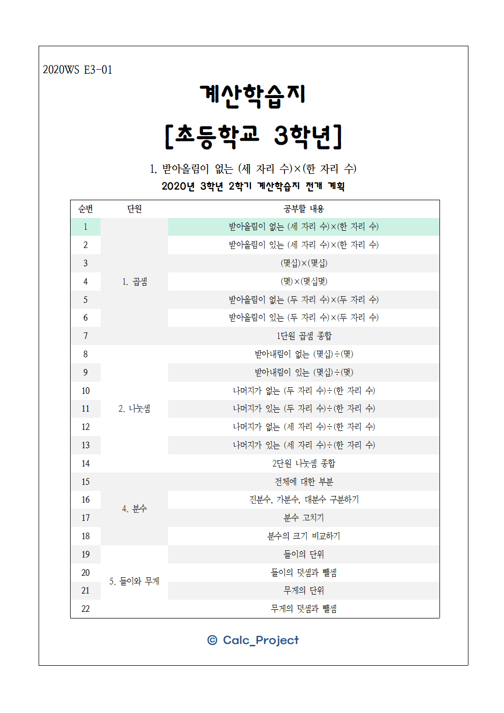 | [초3-2/프리미엄] 받아올림이 있는 (세 자리 수)×(한 자리 수) (1) : 100문제 (19E3-03) (0) | 2020.02.18 |