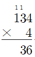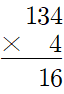 4와 4를 곱해 일의 자리만 적고, 올림할 수를 자릿값에 맞게 적습니다.