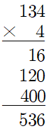 그렇다면 134×4는 어떻게 덧셈으로 나타낼 수 있을까요?