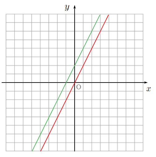 예) 일차함수 y=3x를 y축의 방향으로 1만큼 평행이동한 그래프는 y=3x+1입니다.