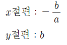 일차함수 y=ax+b (단, a≠0)에 대하여 x절편과 y절편은