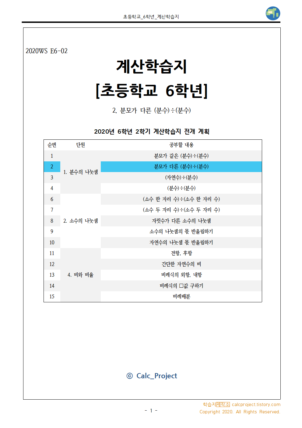 #태그 : 분수의 나눗셈, 진분수, 몫 분수, 몫 자연수, 연습문제, 분수 나눗셈 문제, 초6, 초등학교 6학년, 다운, 다운로드, pdf, 학습지제작소