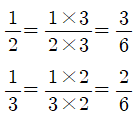 2와 3의 최소공배수를 분모로 만들어줍니다.