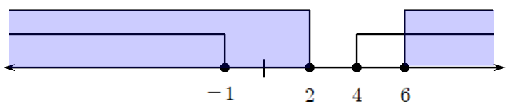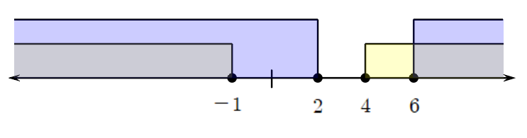 연립이차부등식의 해는 노란색과 보라색이 겹친 회색 부분입니다.