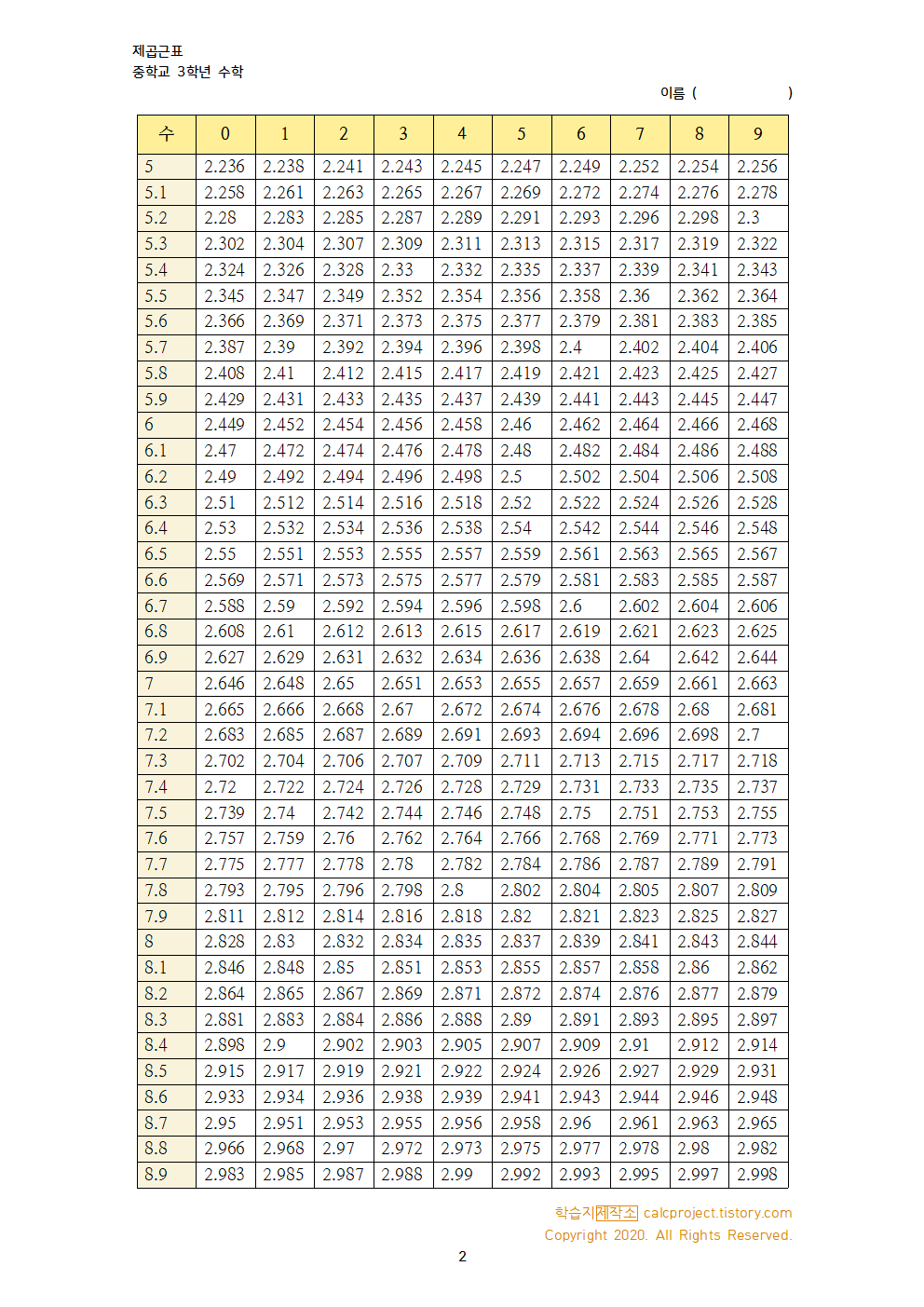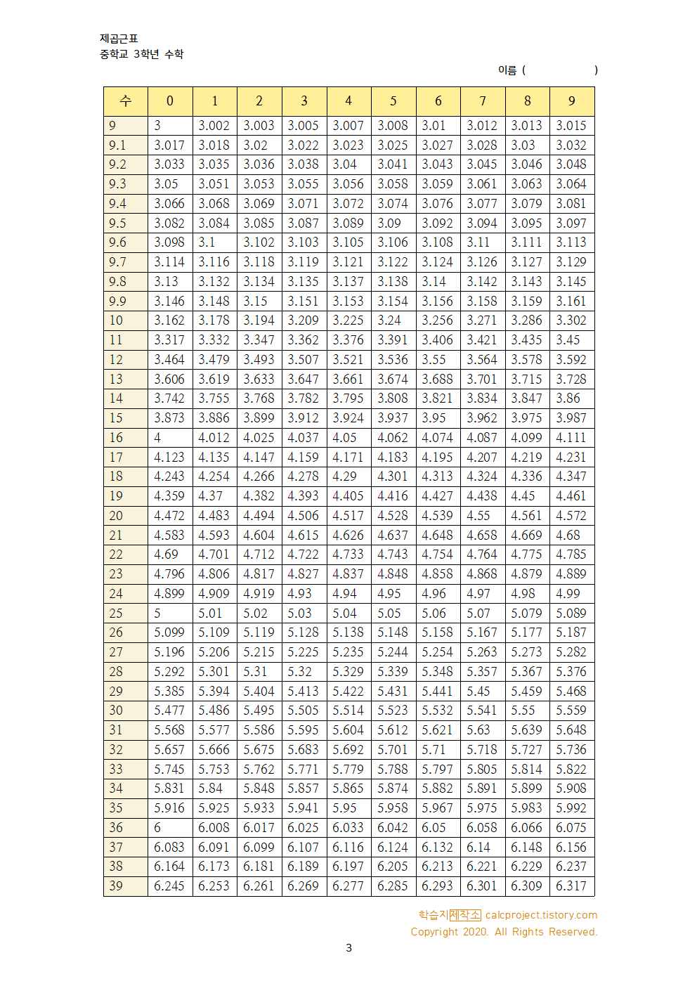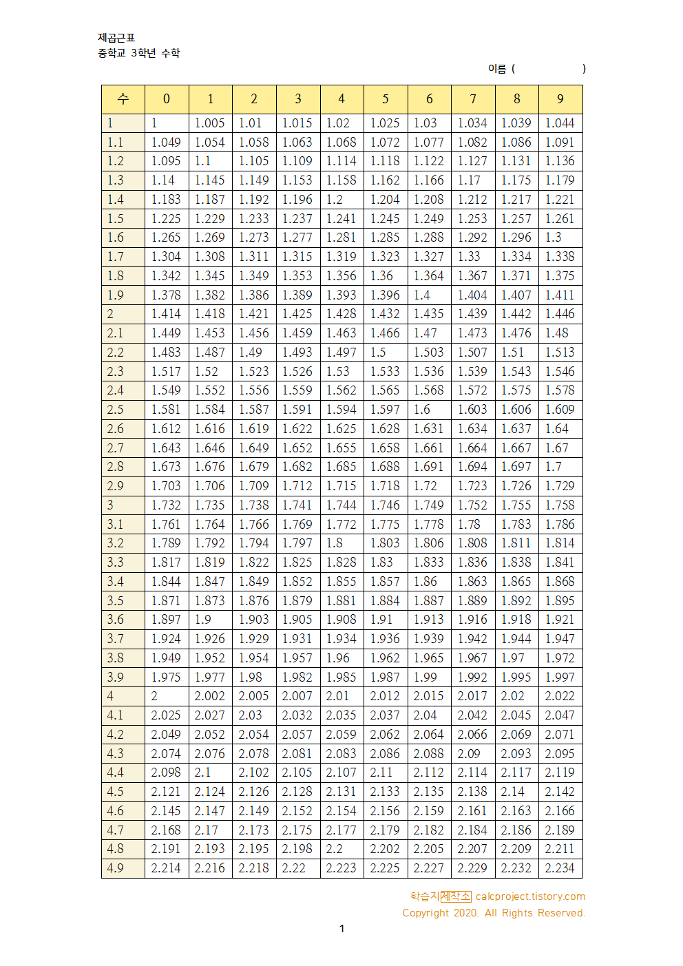 #태그 : 제곱근표, 제곱근, 제곱근표 읽는 법, 중3, 중학교 3학년, 학습지제작소, 제곱근표 다운, 다운로드, png, pdf