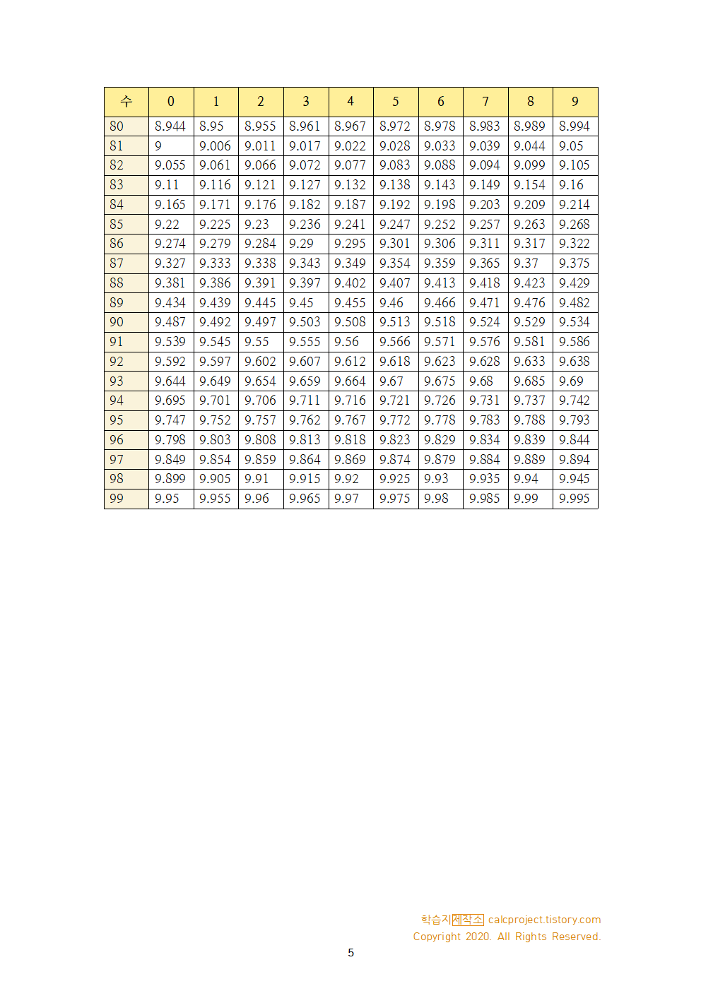 제곱근표는 1부터 9.99, 10부터 99.9, 두 부분을 읽는 법이 조금 다릅니다.