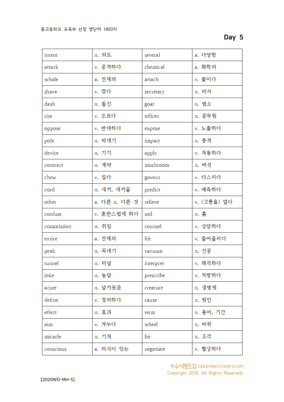| 교육부 선정 영단어 중학생 고등학생용 - Day 3 (0) | 2020.07.14 |