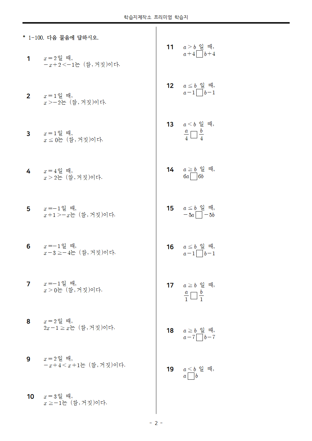 1-10 : 부등식 참/거짓 판정하기