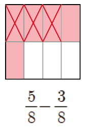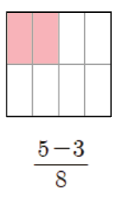 1/8이 2개 남았으므로, 5/8-3/8=2/8입니다.