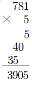 781×5를 계산한 뒤, 10을 곱해 구할 수 있습니다.