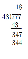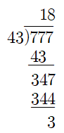 777÷43 = 18...3