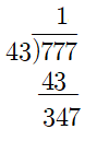 예) 777÷43을 계산해봅시다.