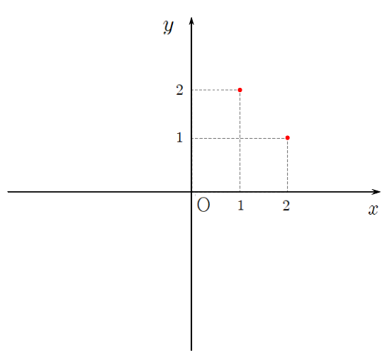 6. 두 점을 지나며 x축과 y축을 점근선(점점 가까워지는 직선)으로 갖는 곡선을 그린다.
