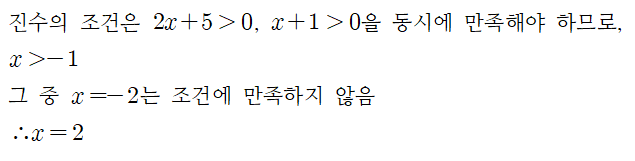 의 진수의 조건은 x+1>0이므로, 해는 조건을 만족합니다.