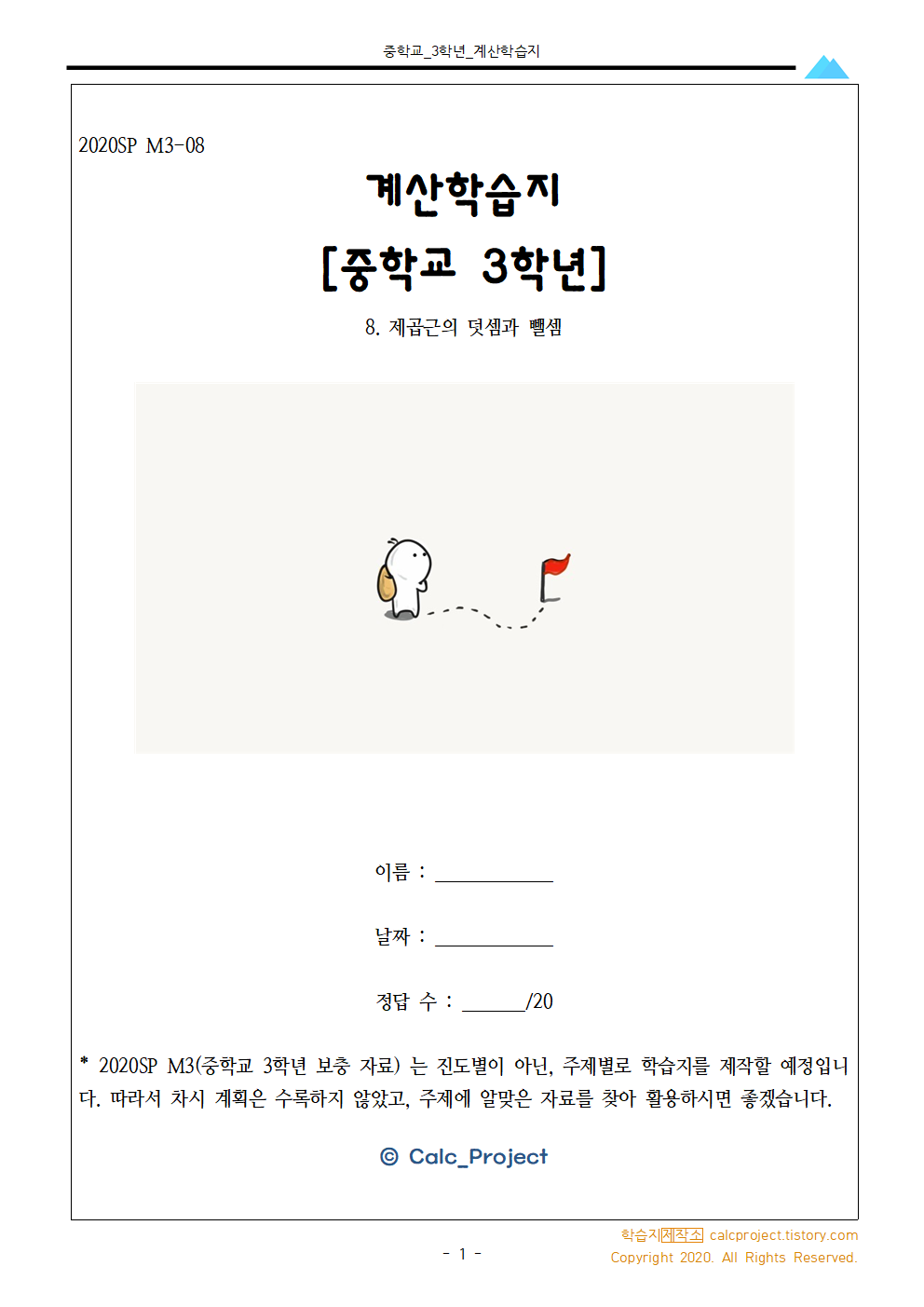 '수학 학습지 > 중학교 3학년 1학기' 카테고리의 다른 글