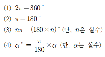 이와 같이 육십분법을 호도법으로, 호도법을 육십분법으로 바꿀 수 있습니다.
