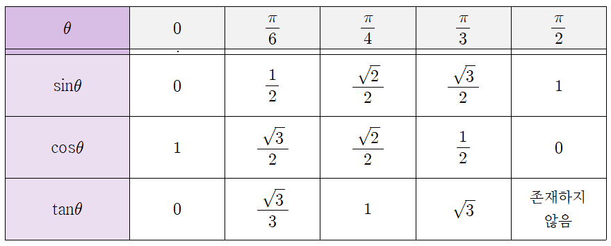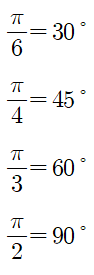 이를 호도법으로 고치면 다음 표로 나타낼 수 있습니다.