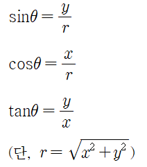 중학교에서 배웠던 삼각비를 되돌아보면 다음과 같습니다.