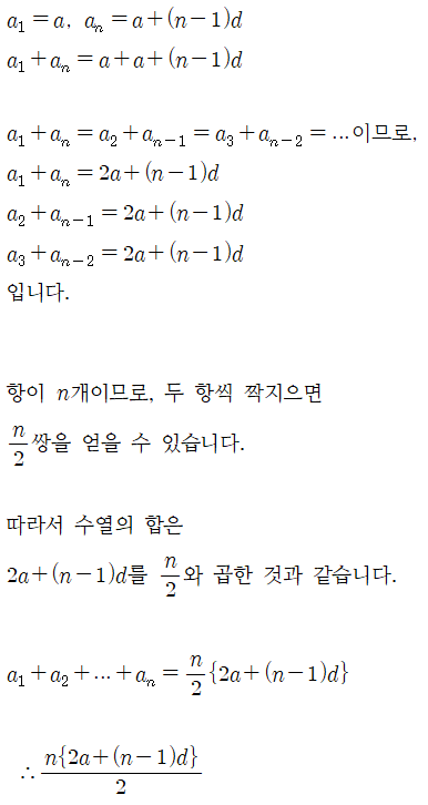 이와 같이 수열의 합을 유도할 수 있습니다.