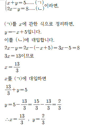 2. 대입법 : 한 미지수를 다른 미지수에 관한 식으로 나타내어 대입하는 방법