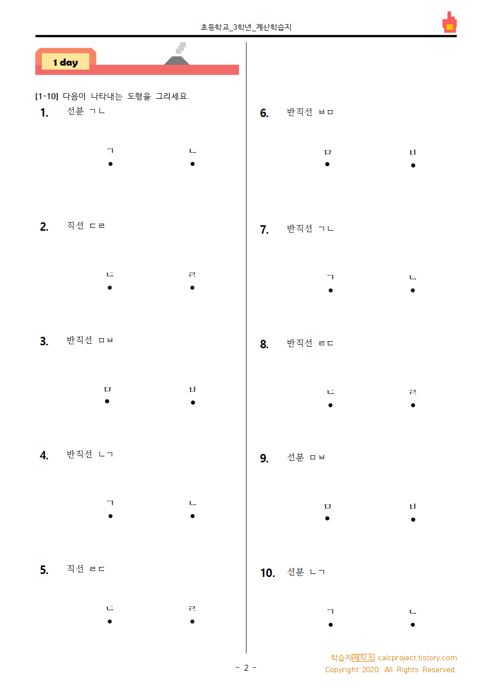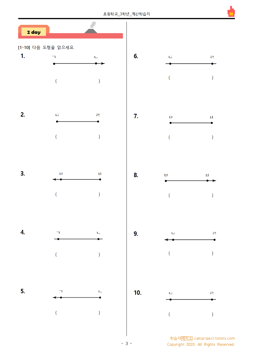 #태그 : 초3, 초등학교 3학년, 평면도형 문제, 직선 반직선 차이점, 선분 직선 차이점, 반직선 읽는 법, 선분 직선 반직선 연습문제, 무료문제, pdf, 다운, 다운로드, 학습지제작소