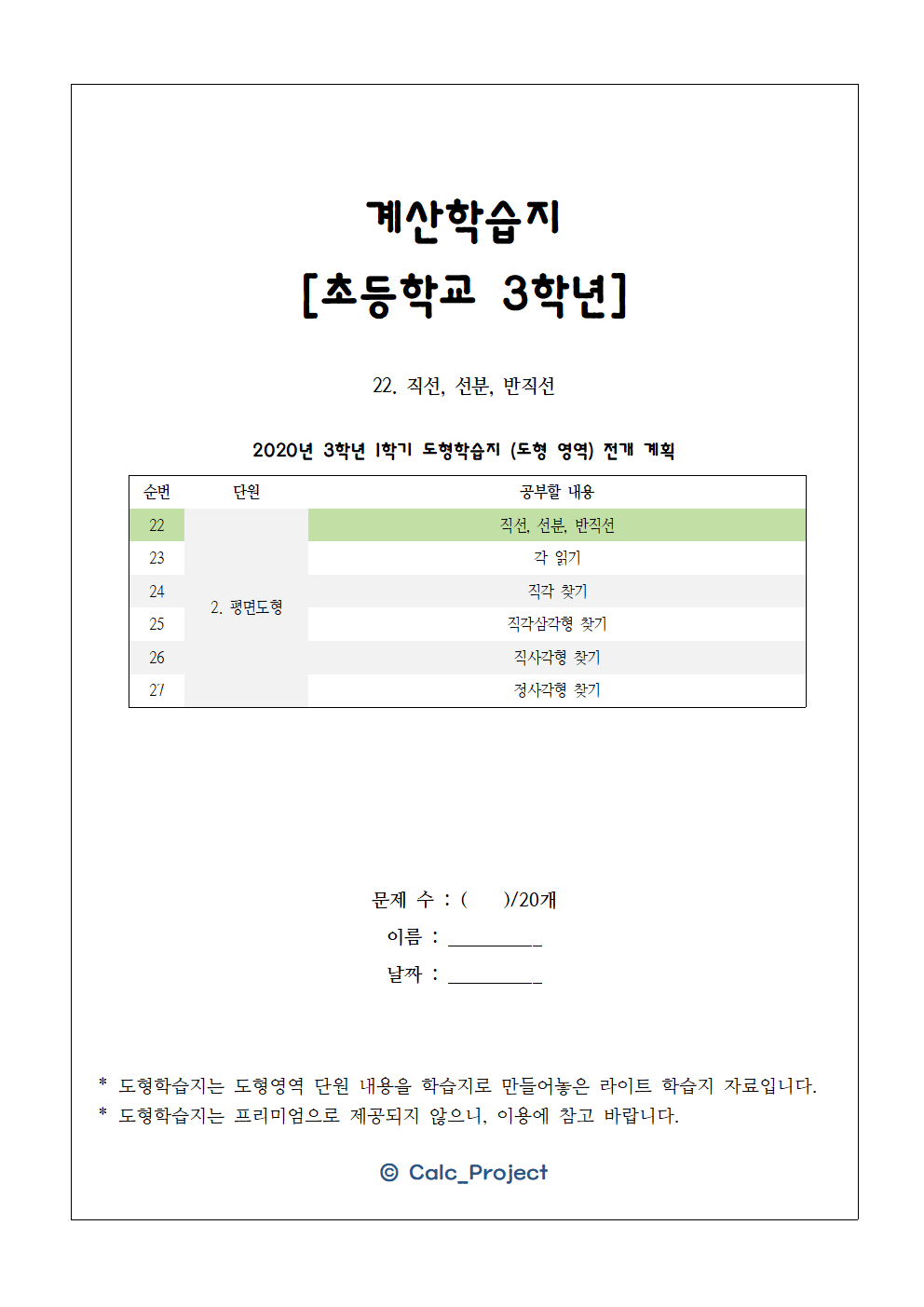[참고] 도형학습지는 계산학습지와 다르게 라이트 학습지만 제공됩니다.