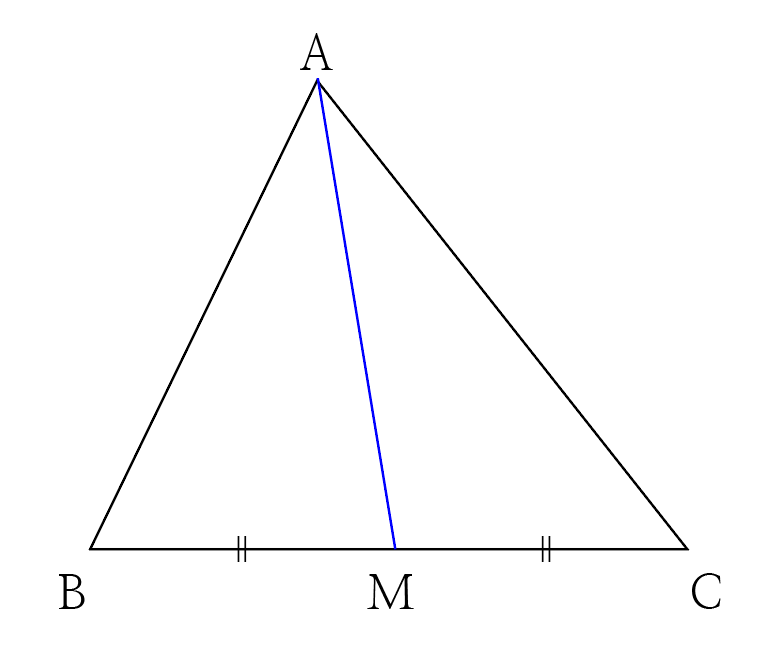 삼각형 ABC에서 점 A를 지나는 중선을 그어봅시다.