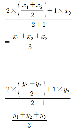 왜 산술평균을 좌표로 가지는지 생각해보시길 바랍니다.