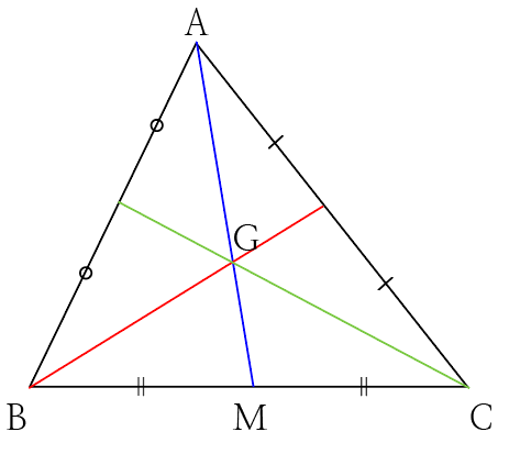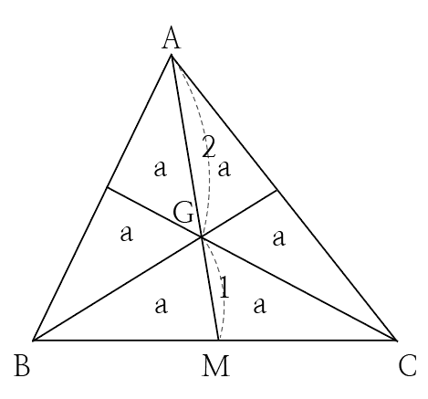 삼각형의 무게중심 G에 대하여 (선분 AG의 길이):(선분 GM의 길이)=2:1
