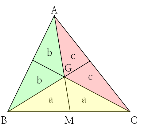 삼각형이 세 중선에 의해 나누어진 여섯 개의 삼각형의 넓이는 서로 같습니다.
