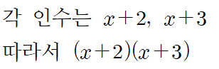 인수란, 하나의 다항식이 둘 이상의 다항식의 곱으로 나타낼 수 있을 때 각 다항식을 말합니다.