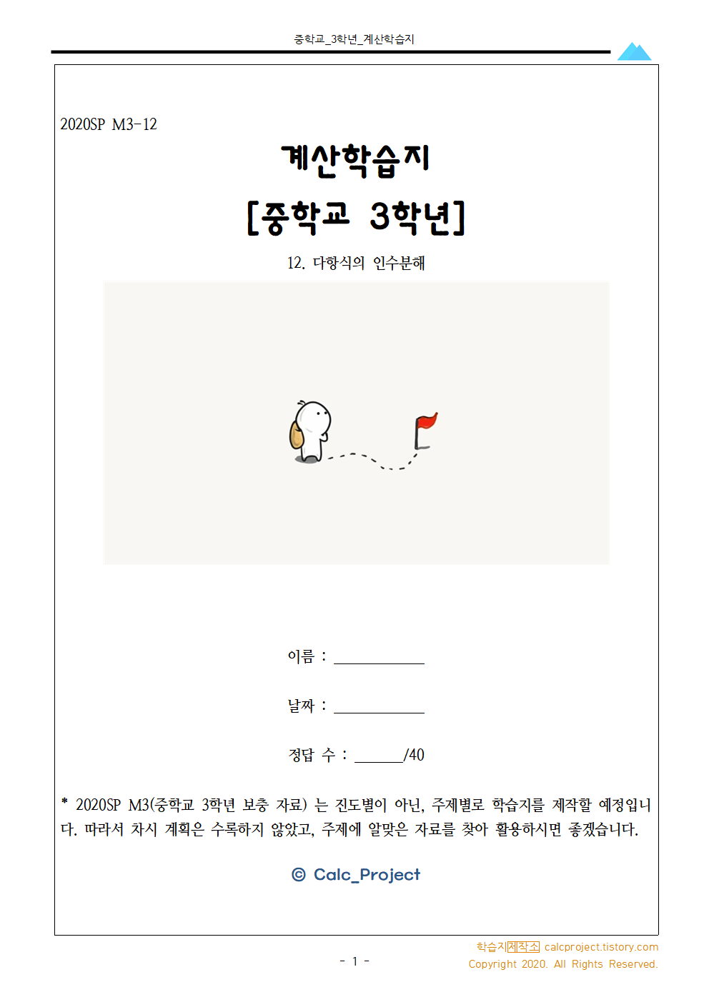 학습지를 풀어보며 인수분해에 익숙해져봅시다.