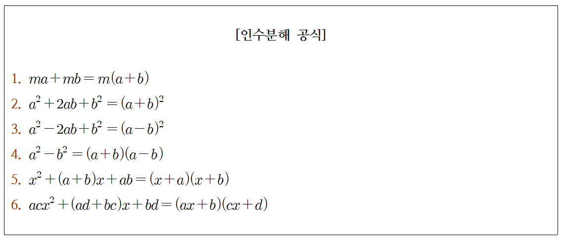 곱셈공식을 열심히 공부했다면 인수분해 식을 잘 이해할 수 있습니다.