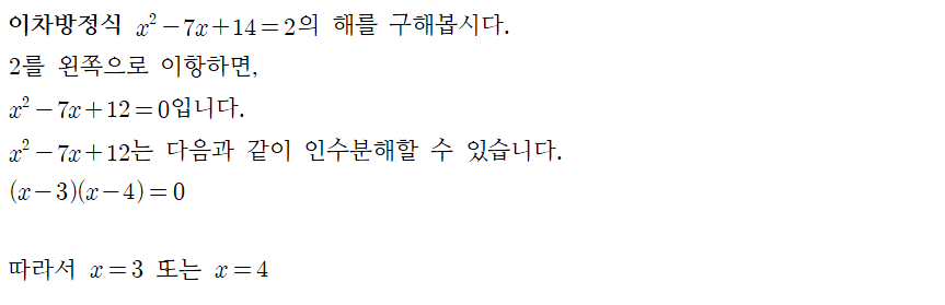 '또는'으로 연결하면 이차방정식의 해를 구할 수 있습니다.