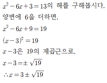 좌변을 완전제곱식으로 만든 후 제곱근을 구하면