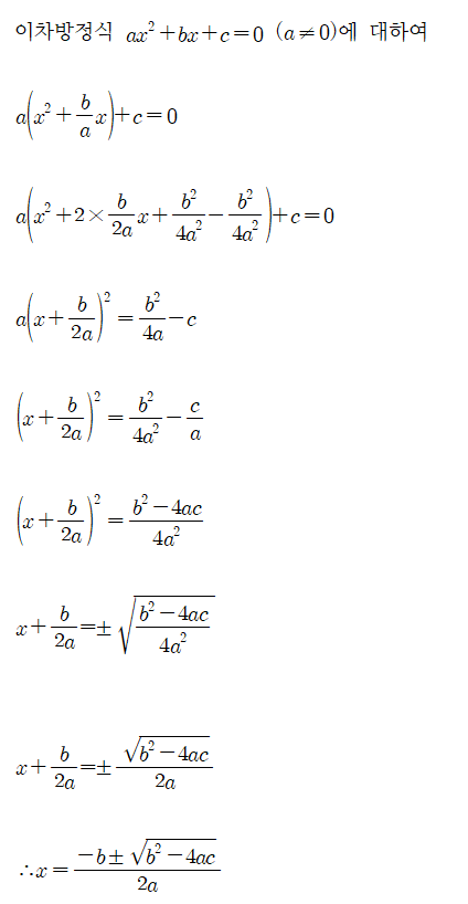 근의 공식을 유도하는 과정은 다음과 같습니다.