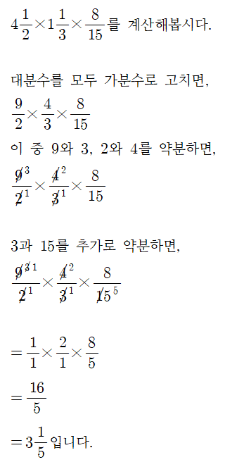 문제를 풀면서 세 분수의 곱셈을 충분히 익힐 수 있으리라 생각합니다.