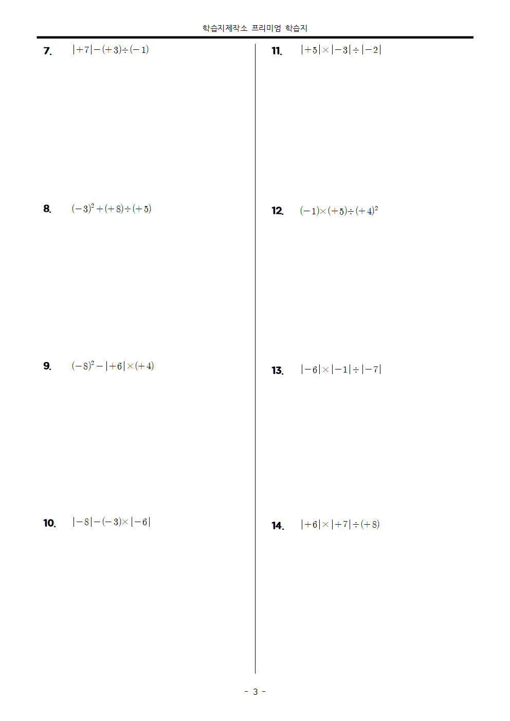 정수의 혼합계산 개념 학습지로는 양이 부족할 것 같아서