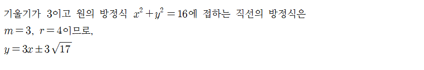 예제를 통해 원 밖의 한 점이 주어진 접선의 방정식을 구해봅시다.
