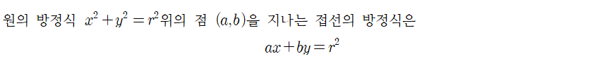 1) (a,b)를 지나는 접선의 방정식 세우기 : ax+by = r^2