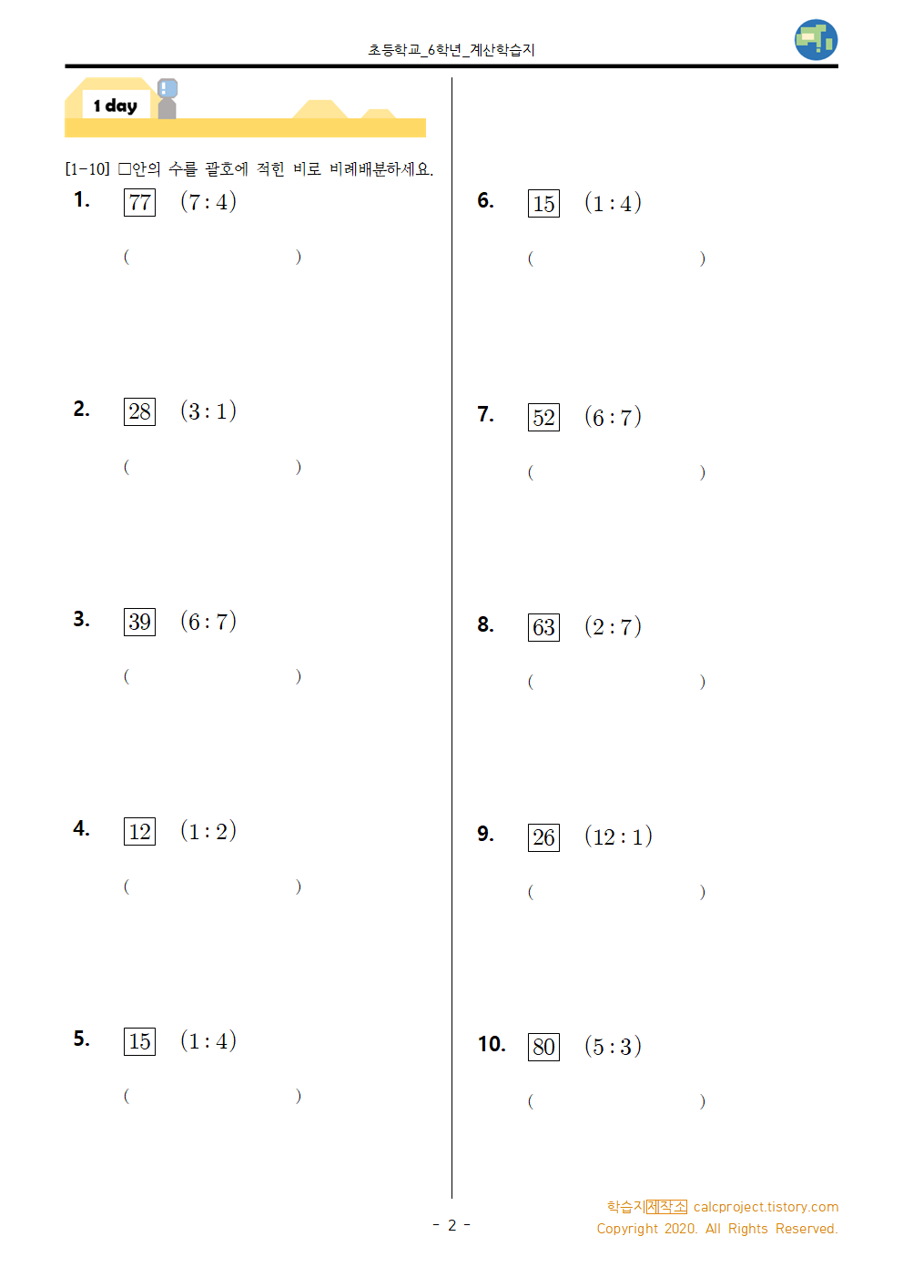 #태그 : 초6, 초등학교 6학년, 비례식과 비례배분 개념, 비례배분 뜻, 비례배분 하는 법, 비례배분 문제, 비례배분 학습지, 다운, 다운로드, pdf, 학습지제작소