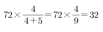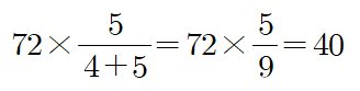 예) 72를 4:5로 비례배분하기 위해서는