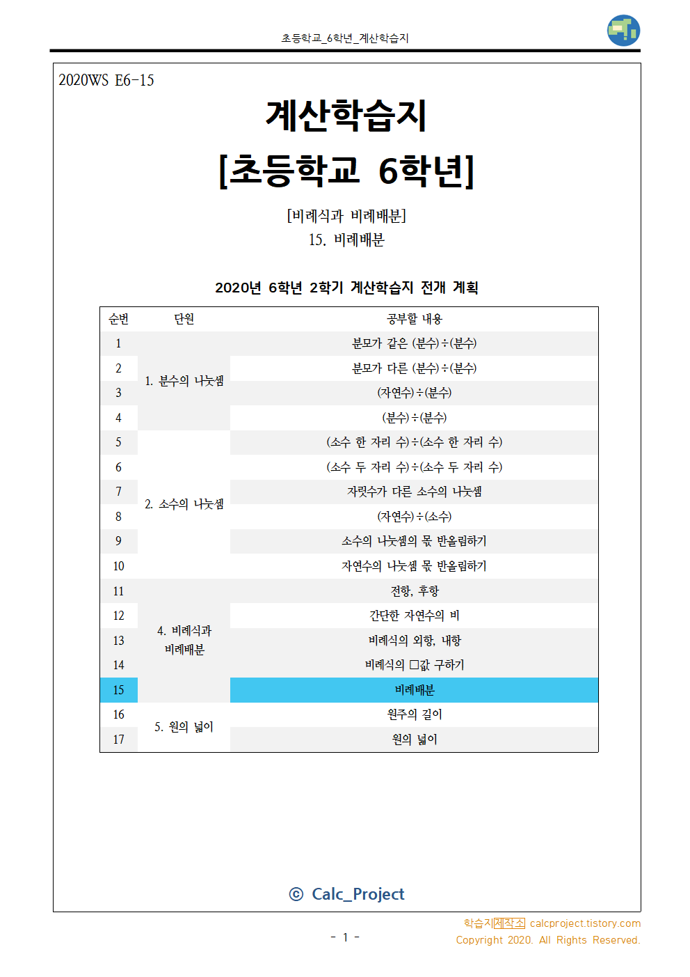 이번 학습지는 비례배분에 대한 내용으로, 주어진 양을 비로 나누는 것입니다.