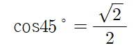 45도일 때 삼각비의 값은 직각이등변삼각형을 생각해보면 됩니다.