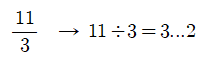 (2) 몫을 자연수부분에, 나머지를 분자에 놓는다.